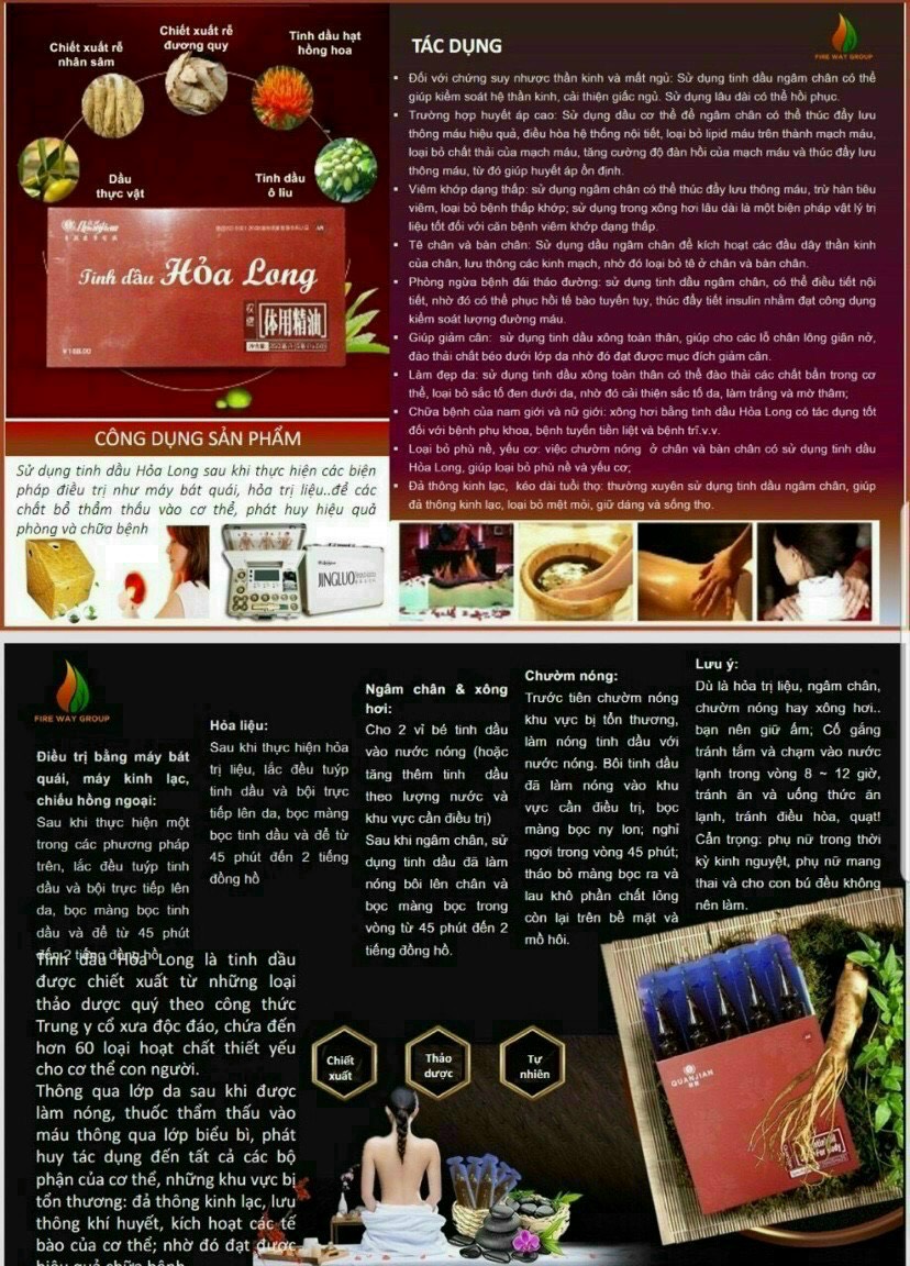 ________________________________________ Tinh Dầu Hỏa Long là sản phẩm trị liệu mạnh mẽ, kết hợp Y học cổ truyền và phương pháp trị liệu tự nhiên. Dùng đúng cách giúp: